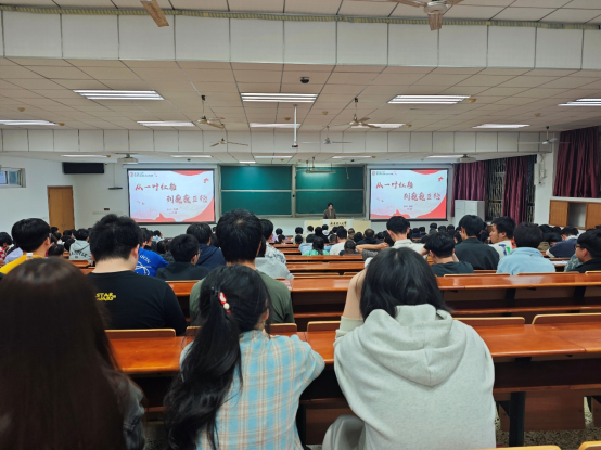 会议伊始,优秀学姐受邀上台开展红色主题分享。学姐以“从一叶红船到巍巍巨轮”为切入点,深情回顾党的光辉奋斗历程,讲述红色革命精神与学院先辈、优秀校友的奋进事迹,引导在场学子传承红色基因,厚植家国情怀,从红色故事中汲取青春奋进力量。