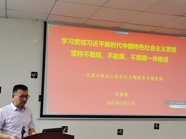 5月12日,学院党委书记书记肖耀根以“学习贯彻习近平新时代中国特色社会主义思想坚持不敢腐、不能腐、不想腐一体推进”为题,给学院党员上主题教育专题党课。