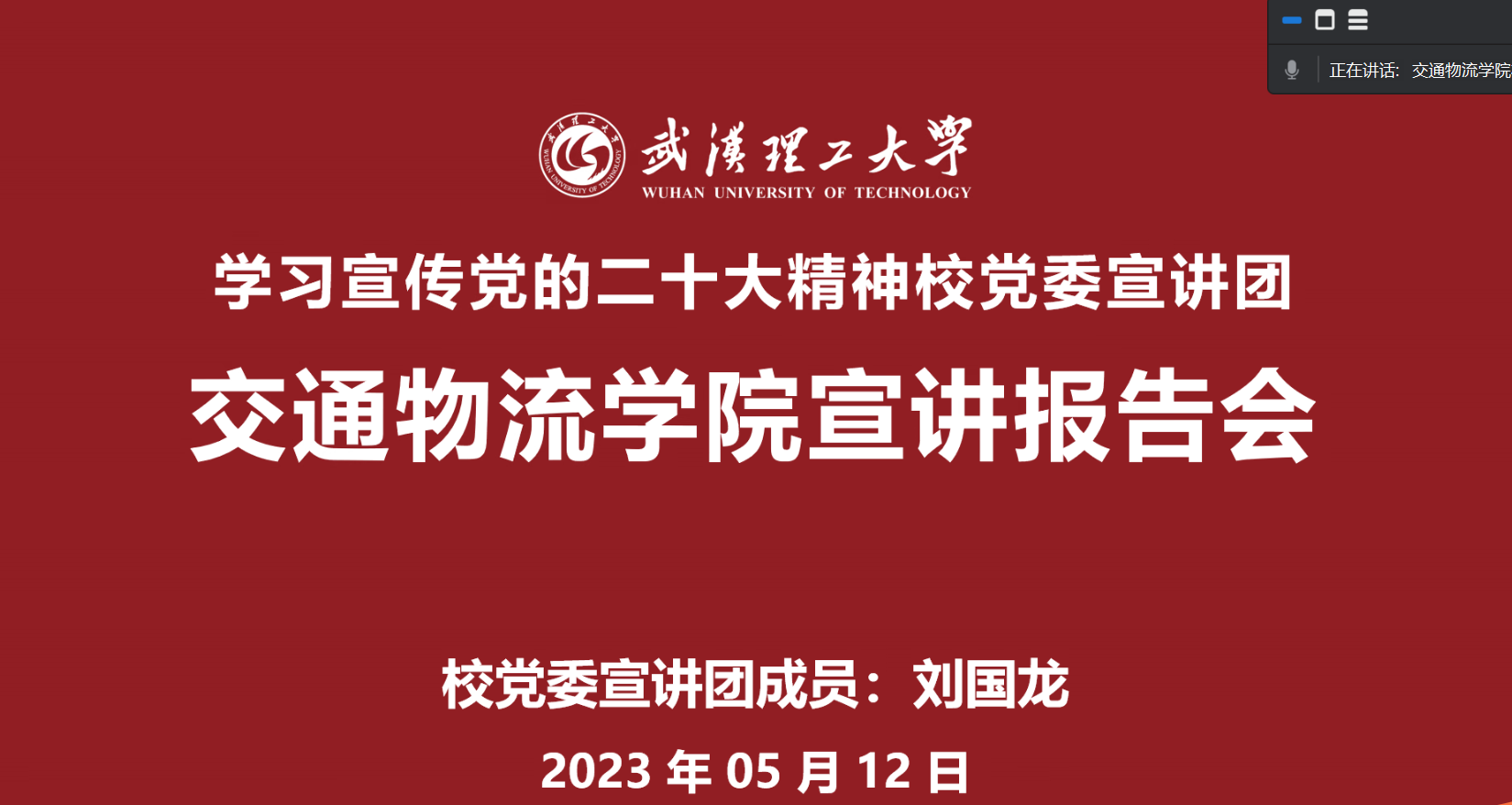 肖耀根书记在主持报告会时指出,刘国龙教授的报告内容丰富、资料详实、论述深刻,紧密联系实际特别是区域经济和一带一路、长江经济带、交通物流学科与专业建设、人才培养实际,是一个高质量的报告,对我们坚持以党的二十大精神为引领,不断服务区域高质量协同发展具有非常重要的指导意义。全院干部、党员要认真学习,深入领会,学思想、强党性、重实践、建新功,自觉提高理论素养、增强能力本领、提升工作成效,以服务区域协同发展的实际行动,为贯彻落实党的二十大精神、实现中国式现代化做出积极贡献。(审核:肖耀根)