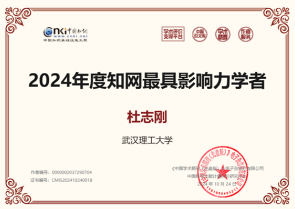 近日,中国知网公布了2024年度知网高被引学者名单,我院杜志刚教授荣获“2024年度知网最具影响力学者”称号。