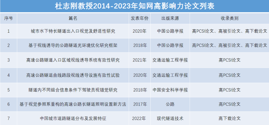 此次评选由中国知网“学术精要”数据库依据2014-2023年间学者发表论文的影响力指数进行评选。高影响力学者遴选范围为近十年发表至少一篇PCSI指数高于1.65期刊或会议论文的学者。而且,近十年发表期刊会议论文的PCSI指数之和位于上述学者的前1%,并满足以下条件:(1)仅统计PCSI指数大于1.65的论文;(2)至少发表1篇高影响力论文;(3)至少发表5篇PCSI指数大于1.65的论文。杜志刚教授2014-2023年知网高影响力论文(第一作者、通讯作者)如下表。