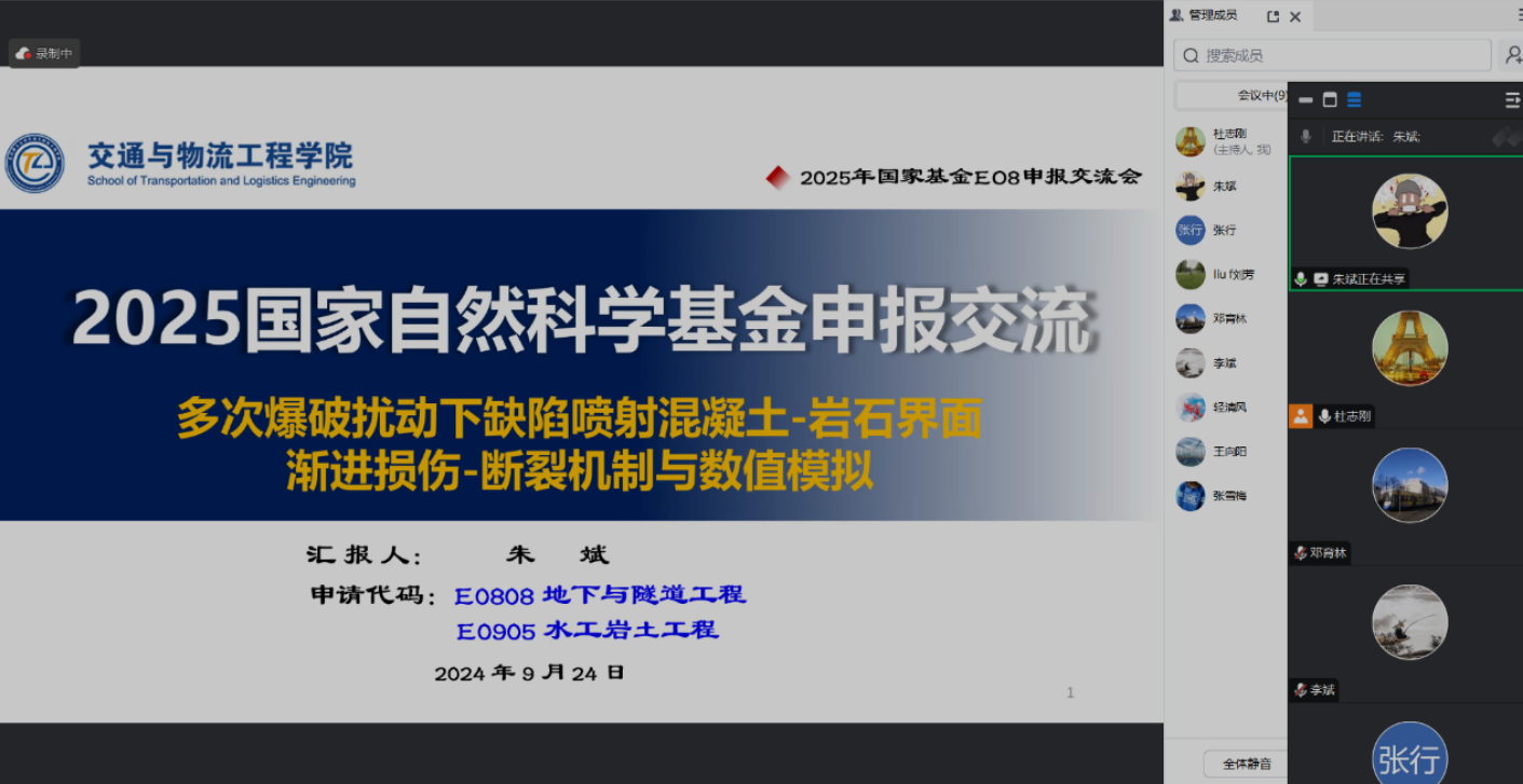 为了更好的推进学校2025年的国家自然科学基金申报工作,根据学院2025年国家自科基金申报分组辅导部署。2025年1月16日上午,学院申请E08方向基金的老师通过在线会议的方式召开了国家自科基金申报小组第一次集中辅导会。E08辅导小组组长杜志刚教授,以及道桥系邓育林、谭金华、李斌、刘芳、张行、张泽宇、张雪梅、朱斌等老师参加了讨论会。
