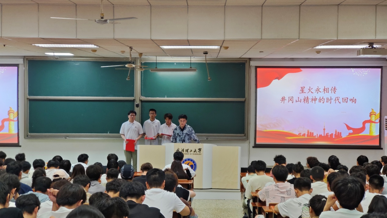 按照惯例进行周会点名后,院马克思主义理论研究协会宣讲队带来了“星火永相传——井冈山精神的时代回响”的分享。宣传队成员通过一系列提问,引出今天的宣讲主题——井冈山精神。从毛泽东同志发表反围剿理论坚定信念再到红军战士和群众打成一片与反动派顽强抗争,从朱德同志以身作则艰苦奋斗到平均年龄只有23岁的革命战士前赴后继,井冈山精神就是对理想的无限忠诚和用生命筑起的不朽信仰。站在新征程的起点上,我们每个人都要从井冈山精神中汲取力量和信仰,在民族复兴的星辰大海中拼搏奋斗。宣讲结束,现场响起热烈的掌声,同学们一定从中收获颇丰。