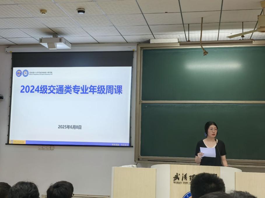 为强化日常管理,规范学习秩序。6月8日,交通类2023级第十六周会于航海楼111教室召开,会议由辅导员商好升老师主持,全体学生参加。