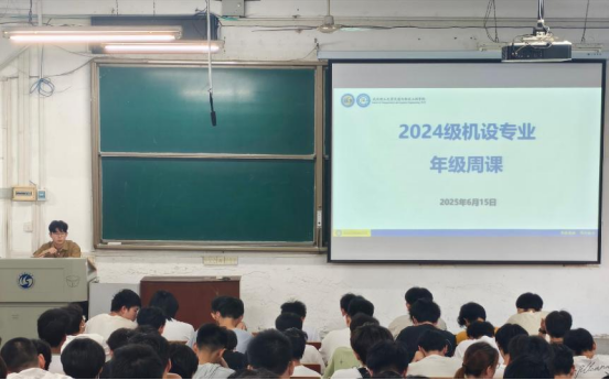 为助力学生高效备考期末,强化安全意识,6月15日晚,2024级机设专业于余区东配楼201室召开年级周课。会议由辅导员喻琪宁主持,机设专业全体学生参加。