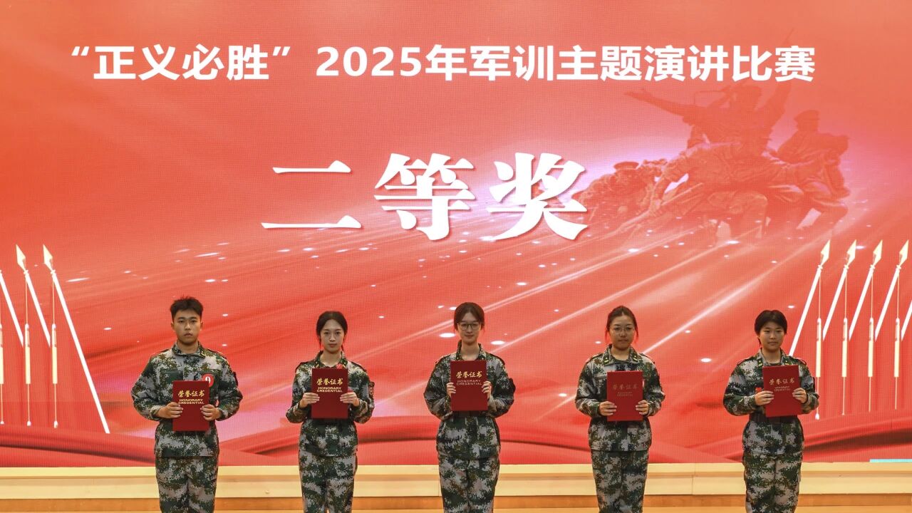 在军训主题演讲比赛决赛中,机设2505班邹德悦同学围绕“正义必胜”主题开展演讲,最终荣获学校二等奖。