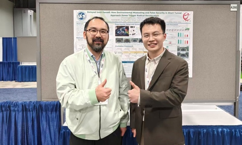 贝润钊的论文《Delayed Until Forced: How Environmental Misleading and False Security in Short Tunnel Approach Zones Trigger Radical Deceleration》经严格评审被大会录用。在报告环节,他就短隧道接近段中环境误导与虚假安全感如何引发剧烈减速这一研究进行了系统阐述,现场与多位学者展开交流,收获了宝贵意见与建议。