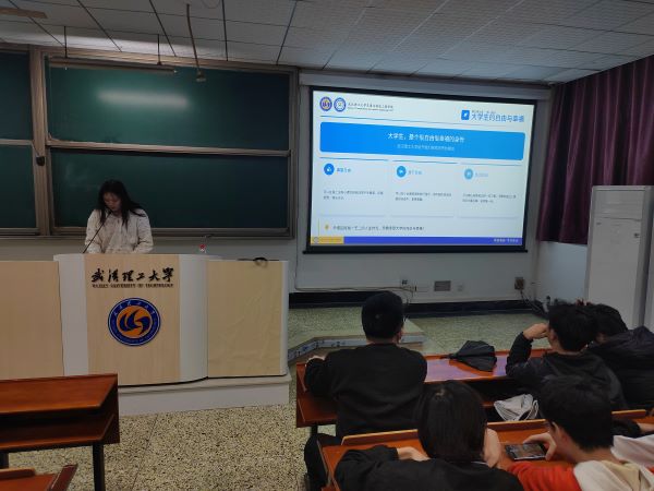 结束了对国家学生体质健康标准的解读之后,进入了由年级长袁嘉希主持,袁嘉希、郭艳、黄文清三人分享个人学习与生活感悟的“学习分享促进会”模块。首先由郭艳同学分享了自己的观点:过程比成长更重要。她鼓励同学们多复习总结,稳扎稳打,同时保持一个好心情来投入学习,在学习与生活之间找到平衡;随后由黄文清同学分享自己对于大学的看法,她着重讨论了大学生的自由与幸福,推荐同学们大胆的尝试自己想做的事,心甘情愿的走自己选的路;然后由袁嘉希同学分享他推荐的时间规划,他认为应当从现在开始做好规划,理清思路,找准目标,实现个人的理想。最后辅导员进行了总结阐述,他希望同学们可以从袁嘉希同学等人的理解感悟中孕育出属于自己的思考,找到适合自己的发展方向。