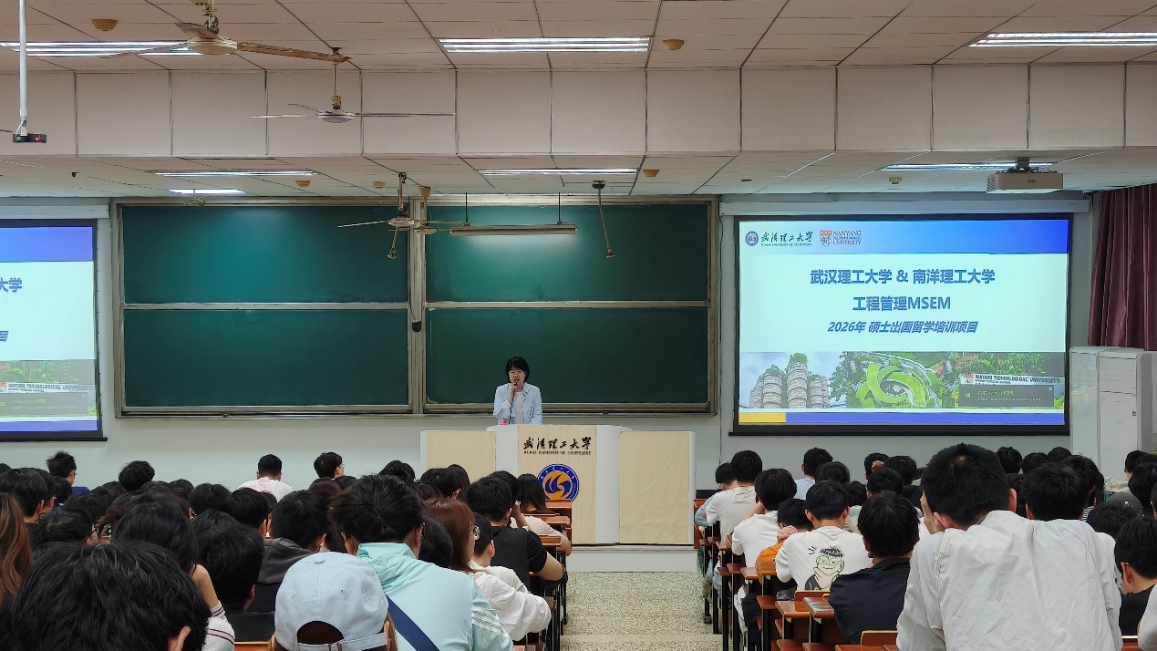 继续教育学院余老师为同学做了留学政策宣讲。余老师介绍与南洋理工大学合作的MSEM留学培训项目,强调该项目为成人影视片