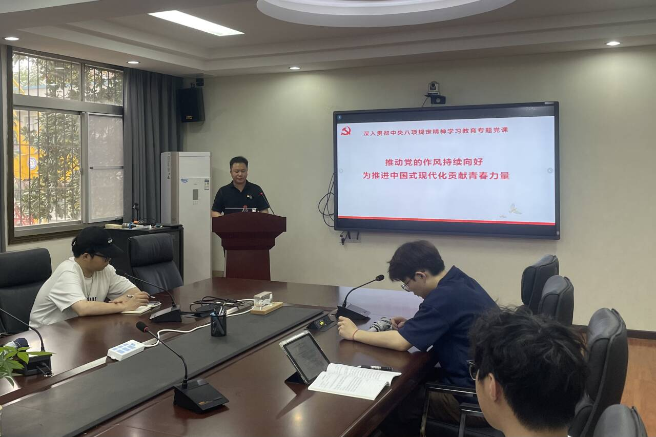 4月11日,为深入学习贯彻党的二十大精神和中央八项规定精神,强化党员纪律意识,涵养优良学风,成人影视片 本科六党支部在学院218会议室开展“严守作风纪律防线,夯实学术发展基石”主题党日暨支部书记讲党课活动。本次活动由支部书记谷进主讲,支部全体党员参加。