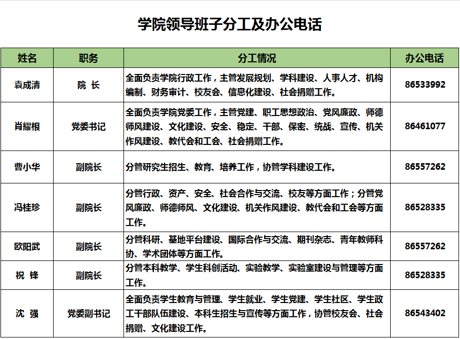 学院领导班子分工及办公电话