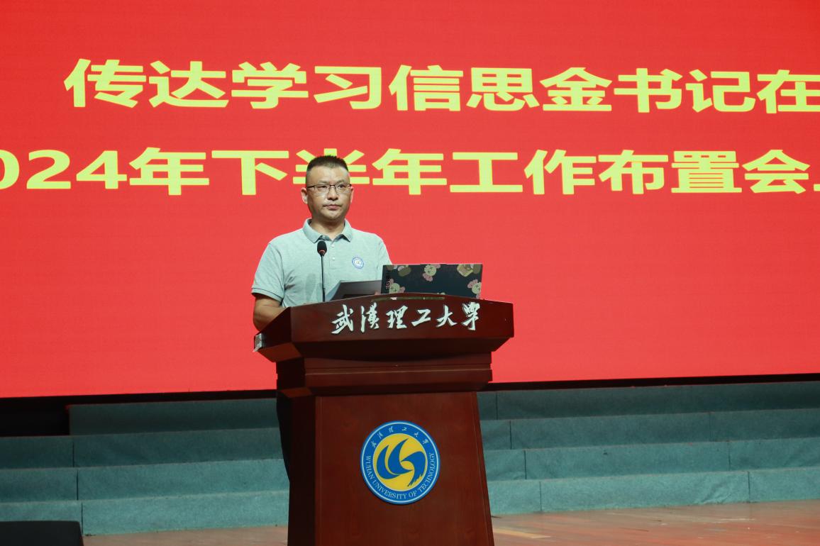 院党委书记肖耀根传达学习了校党委书记信思金《紧扣主线 突出重点 以高质量发展的实绩实效助力教育强国建设》的讲话精神。他指出,下半年,学院师生要将学习贯彻党的二十届三中全会、全国教育大会和教育强国建设规划纲要精神作为主题主线,积极投身改革,坚持学用结合、学以致用,自觉把二十届三中全会、全国教育大会和教育强国建设规划纲要精神与自身岗位职责使命联系起来,不断增强党组织的政治功能和组织功能,以高质量党建助推学院高质量发展。