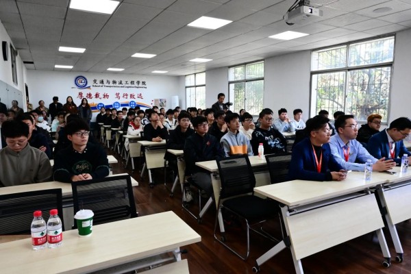第三部分,2017届校友毛林为同学们做交通行业就业指导,毛林列举出同学们的三大就业方向,向大家分享了自己的求职技巧和应聘经验。此外,他强调了学习与实践相结合的重要性,提醒同学们在大学期间要积极参与实习和项目实践,积累实践经验,提升自己的竞争力。随后,在答疑交流环节中,同学们积极发言讨论,提出疑惑,讲师们耐心给予建议和指导。