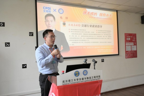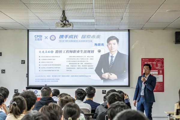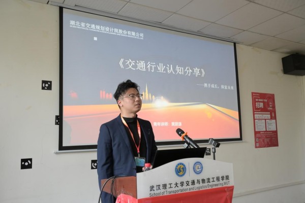 首先,2015届毕业生校友黄蔚源讲师为同学们带来了交通行业认知分享。他将交通行业划分为交通规划、交通运输服务、基础设施建设以及交通管理等六个方面,并详细地介绍了工程项目建设的各个阶段,使同学们对交通行业有了更为全面和深入的认识。此外,黄蔚源还分享了自己在交通行业的实习经历和所见所闻,通过亲身经历,向同学们展示了交通行业的实际工作场景和职业发展路径。