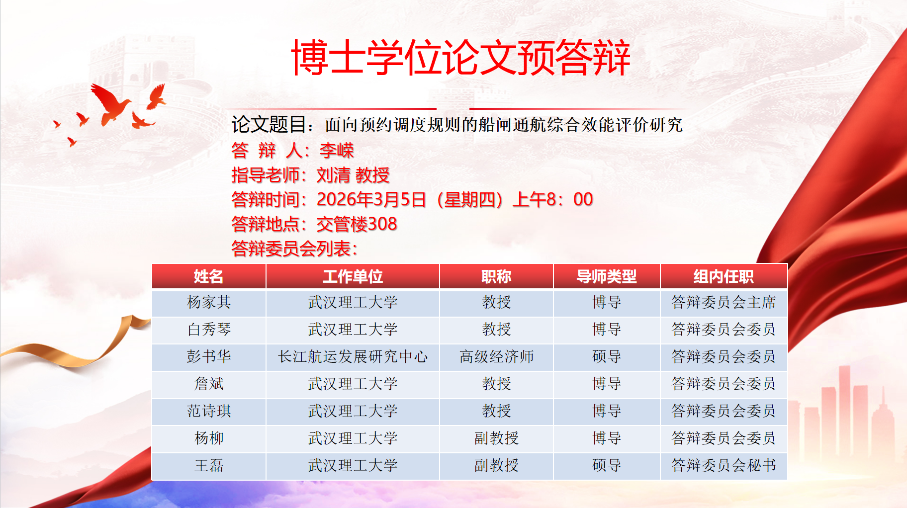 博士学位论文预答辩公告
